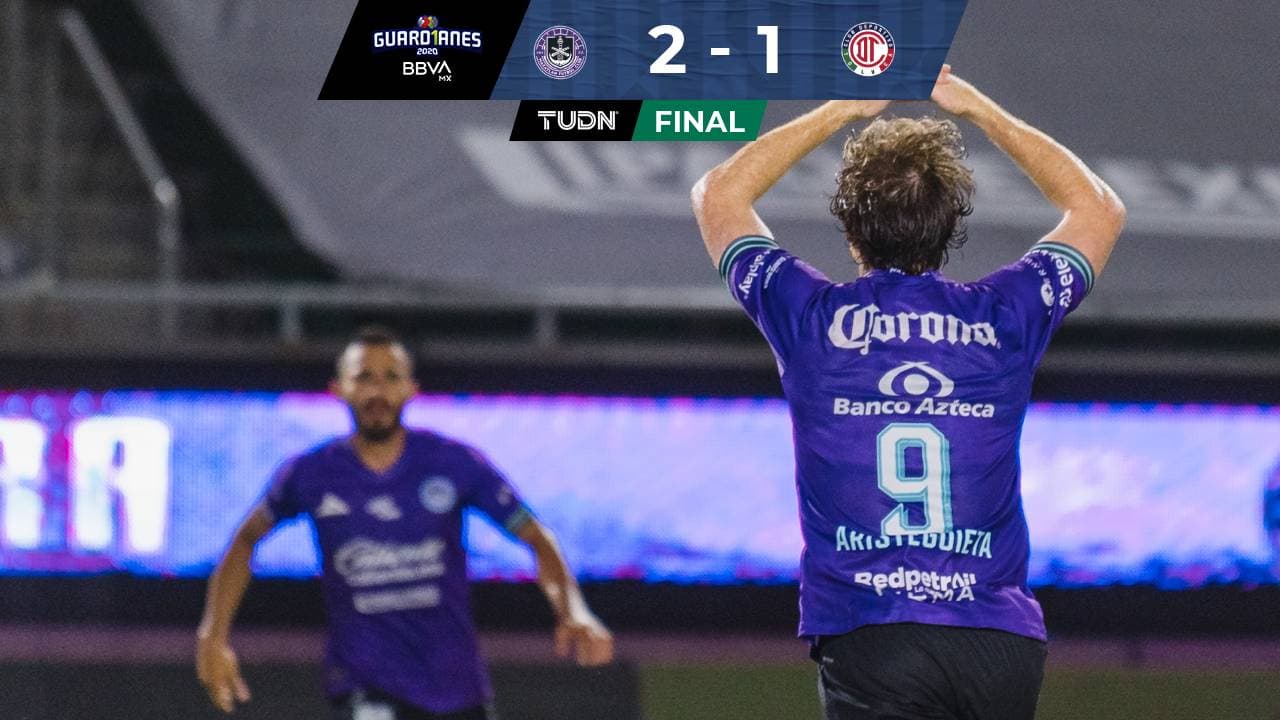Mazatlán se puso al frente tras una jugada peligrosa de Toluca en que la pelota pasó por un lado del arco. Aristeguieta llegó presto al remate tras un centro por derecha y con la rodilla mandó guardar el esférico.