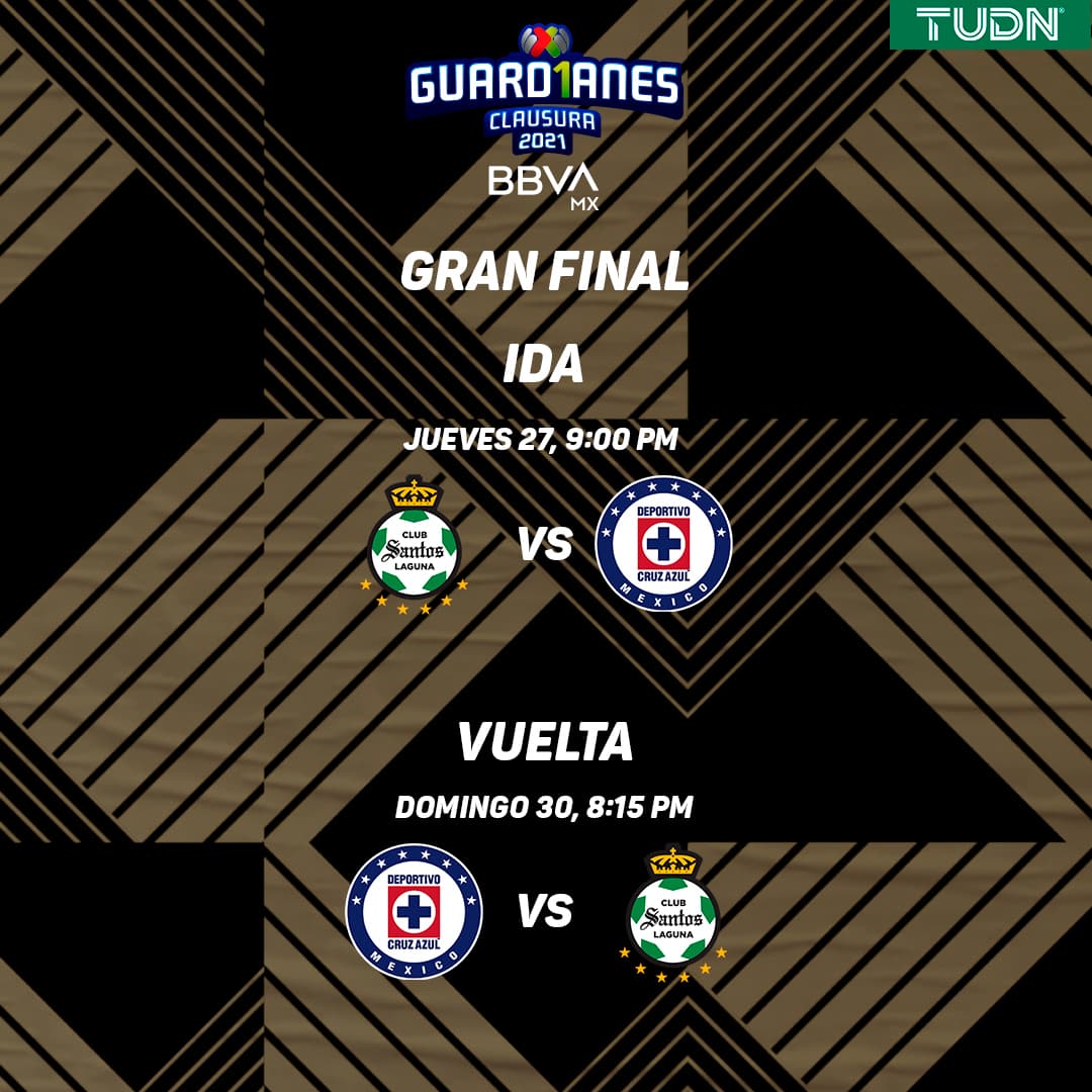 La Gran Final se llevará en su tradicional partido de Ida y Vuelta. El primero será el jueves 27 de mayo a las 21 horas, tiempo del centro de México en el Estadio TSM, casa de los laguneros.