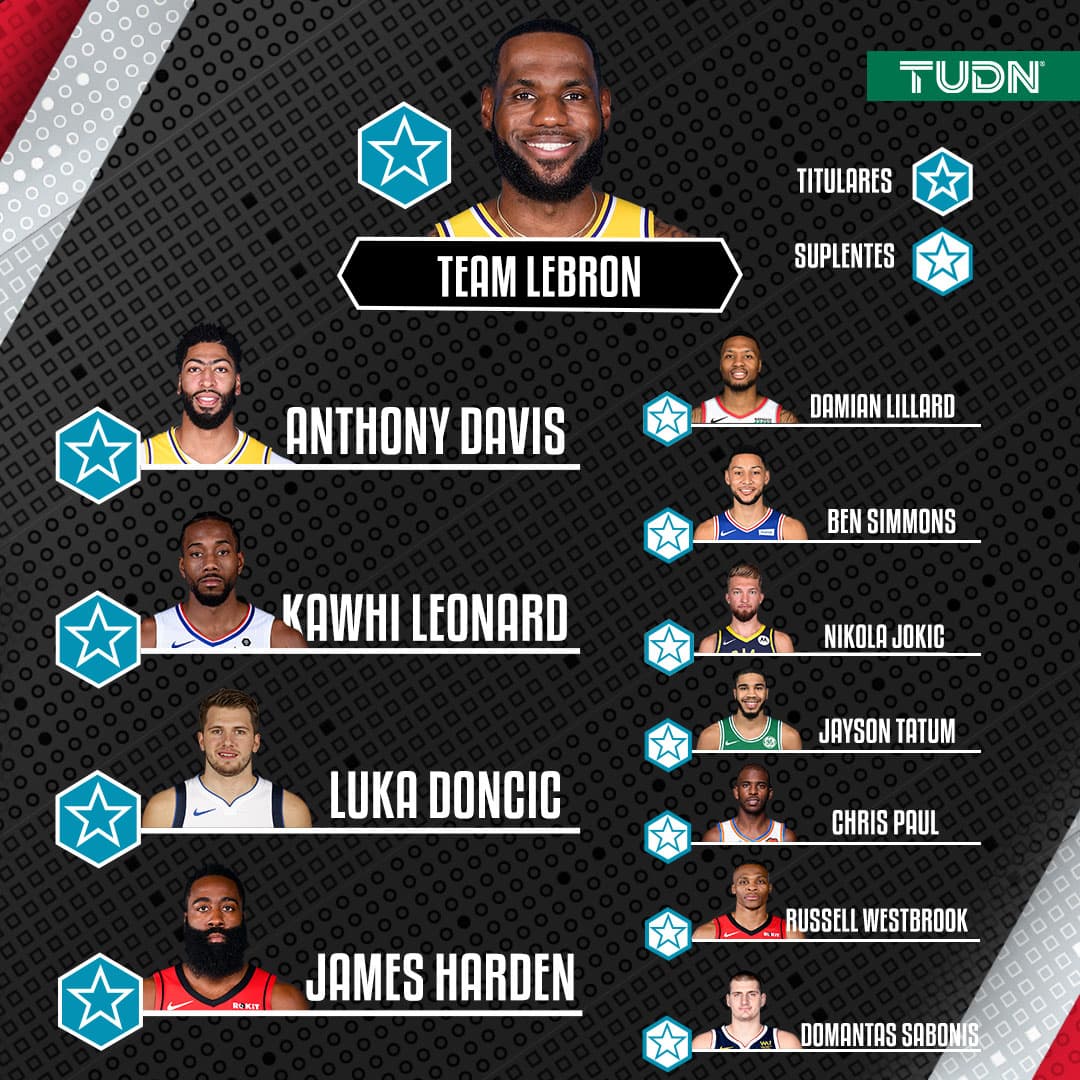 El más votado por los aficionados LeBron James obtuvo el derecho al pick inicial en la primera ronda de titulares, que como era de esperarse fue su compañero en Los Angeles Lakers, Anthony Davis, quien ha disputado 42 juegos esta temporada, con un promedio de 26.4 puntos, 9.1 rebotes, 3.3 asistencias y 2.4 bloqueos.