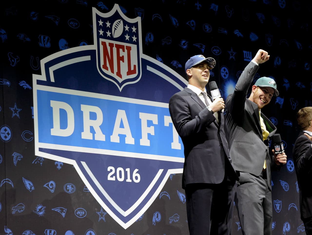 Por séptima vez en la historia el Draft fue encabezado en las selecciones 1 – 2 globales por quarterbacks: Jared Goff reclutado por Los Angeles Rams y Carson Wentz para Philadelphia Eagles. Goff sería titular de los Rams desde el inicio de la temporada regular y Wentz competirá con Sam Bradford por el puesto de abridor en Eagles, si Bradford se mantiene en el equipo.