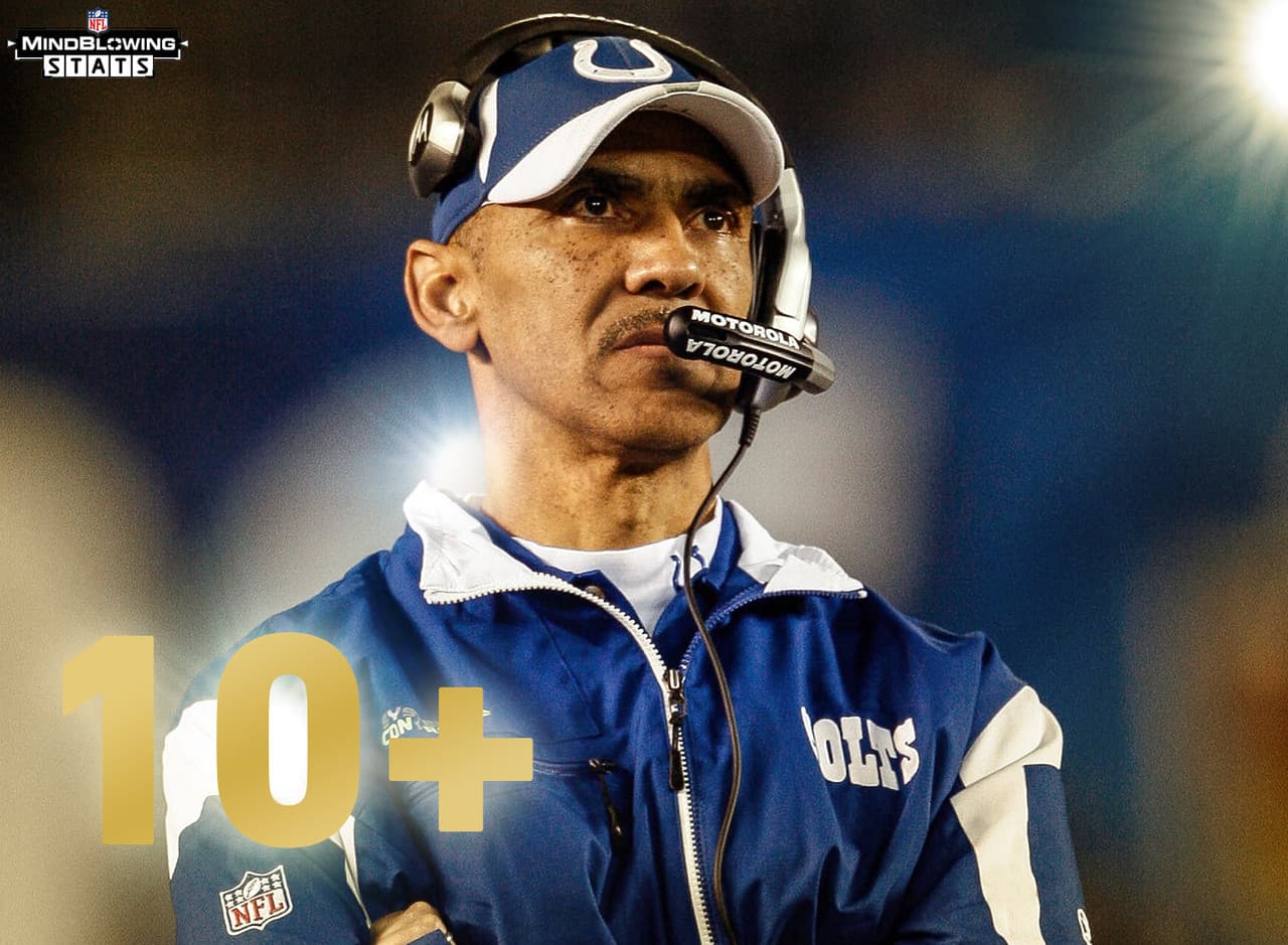 Tony Dungy ganó 10 ó más juegos en 7 temporadas consecutivas con Indianapolis Colts de 2002 a 2008. Es uno de los 4 entrenadores en jefe con las rachas más largas de 10 ó más victorias: Bill Belichick lleva 13 temporadas (2003 – 2015), George Siefert lo hizo 8 campañas (1989 – 1996) y Tom Landry en 7 temporadas (1975 – 1981).
