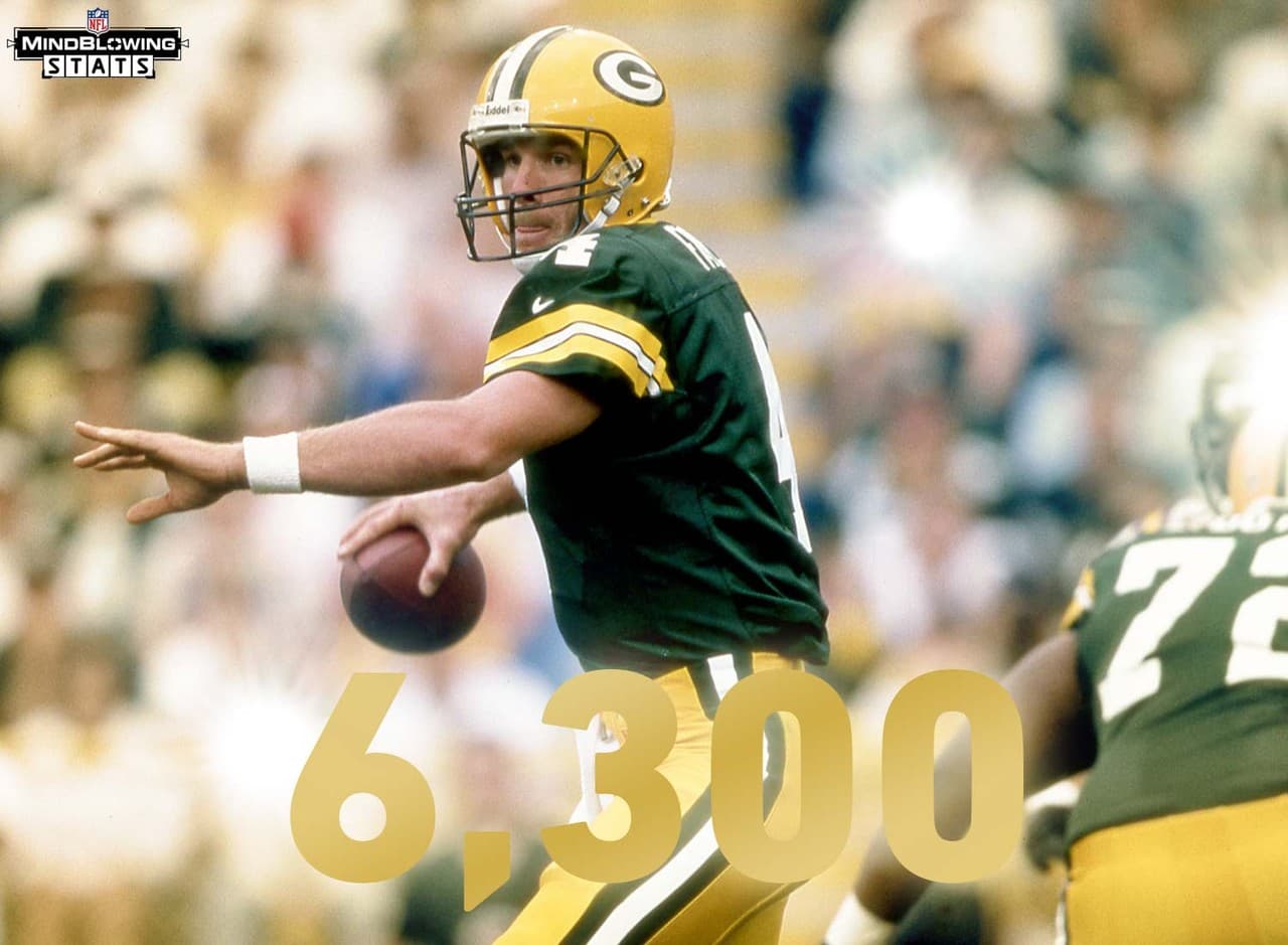Brett Favre todavía tiene los récords de más pases completos con 6,300 e intentos de pase con 10,169. Está empatado con Peyton Manning en victorias de temporada regular con 186. Pero también tiene marcas negativas como la de intercepciones con 336 y veces que fue capturado con 525.