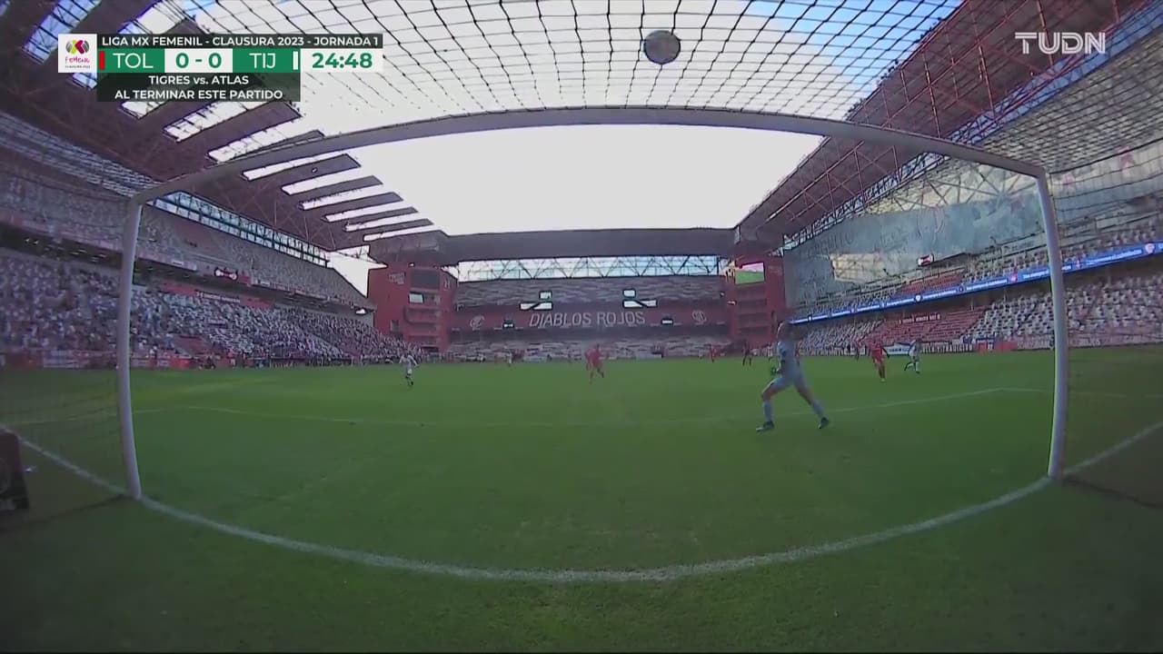 Renae se escapa por el esférico y saca el bombazo, pero Daniela estira los brazos para mandar a córner.