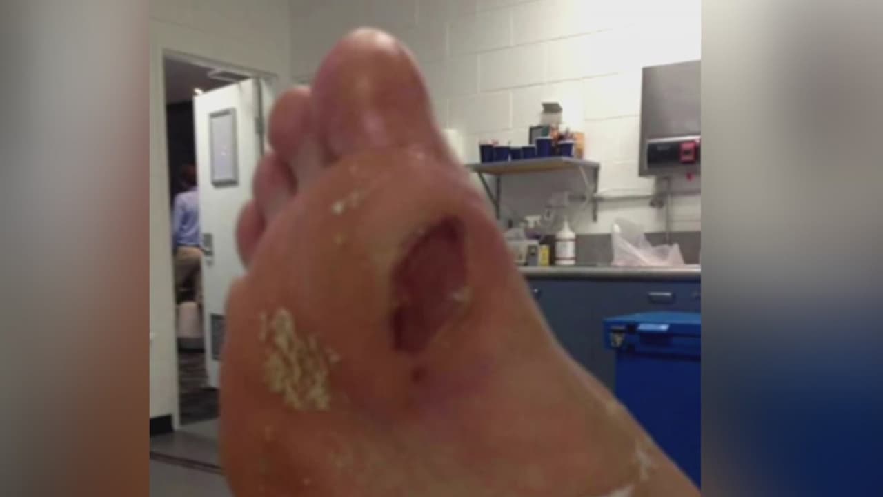 Así le quedó el pie al coreano Chung, que se retiró del Abierto de Australia ante Federer