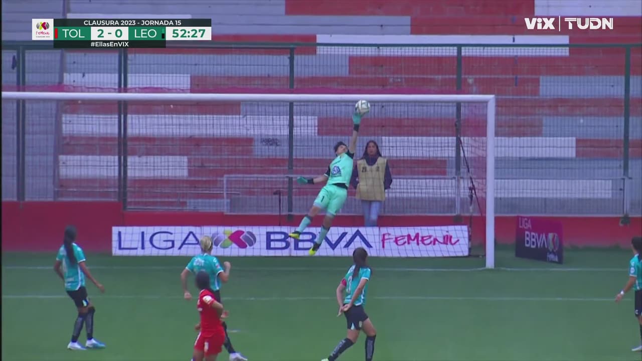 La portera de León reaccionó perfecto al tiro lejano y poderoso de Mariel a los 52’.