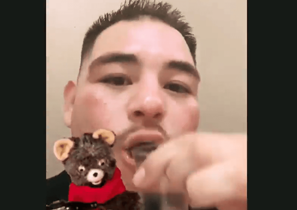 Incluso Ruiz Jr. se da tiempo para jugar con un langostino mientras manda saludos a sus millones de fans que lo siguen en Instagram.
