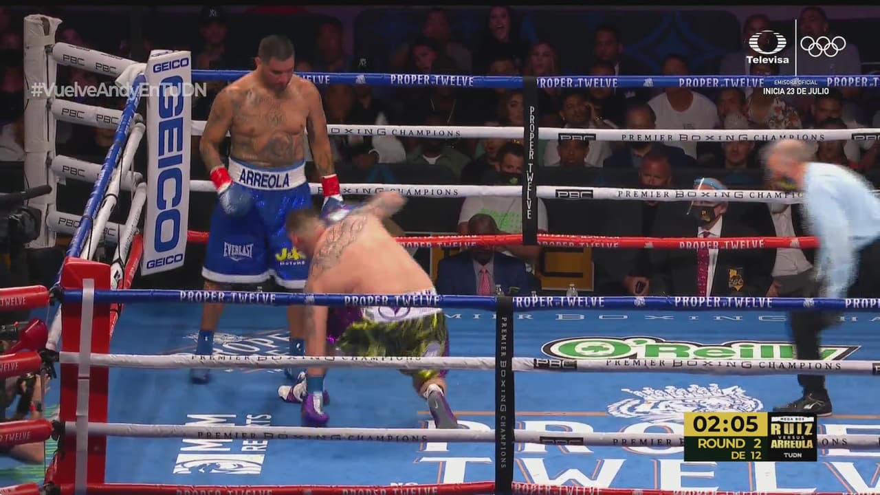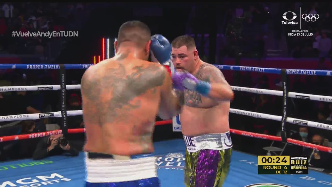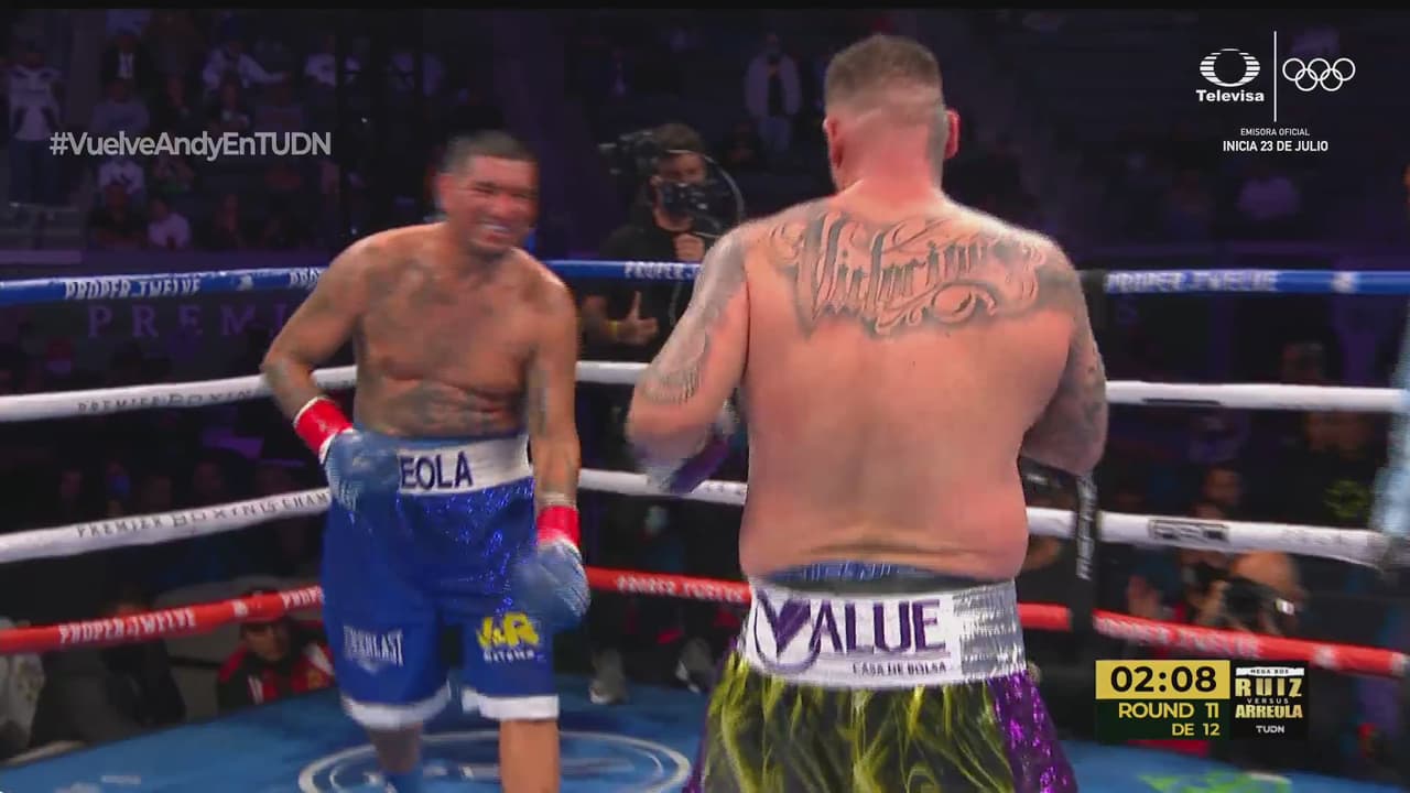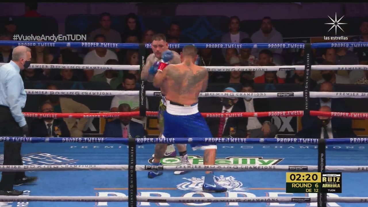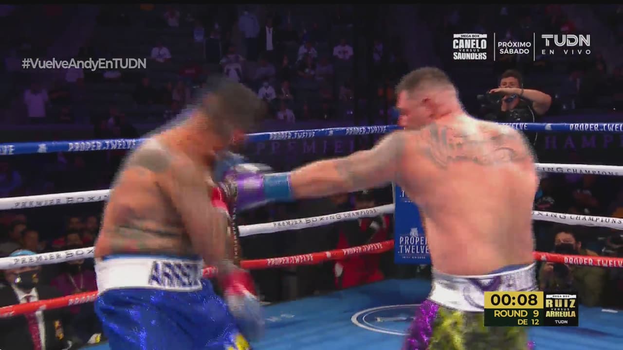 La pelea llegó a los ocho capítulos y el drama llegó en el primer tercio, cuando Arreola recibió un golpe con la derecha de parte de Andy Ruiz, se dolió y su ríctus de dolor invocó al referee para saber si podría continuar y ante su señal, el combate prosiguió, pero más pausado.