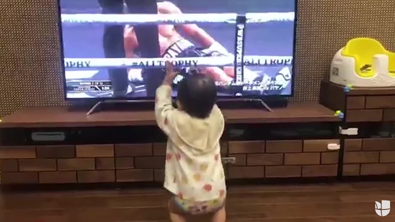 Naoya Inoue, campeón invicto gallo de la OMB, noqueó en un round a Juan Carlos Payano, y su hijo no pudo evitar celebrar la impresionante victoria de su padre.
