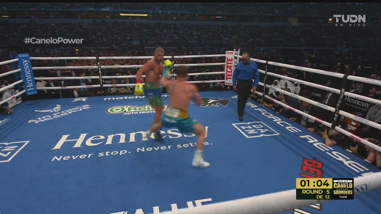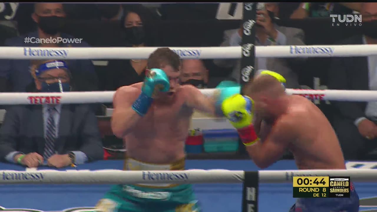 Saunders empezó a marcar una diferencia en su ataque, pero Canelo levantó los brazos para trabajar la defensa y cuando avanzaba, no sólo hacía retroceder al inglés, también le hacía daño con facilidad. El mexicano se puso a trabajar con la izquierda para conectar con poder.