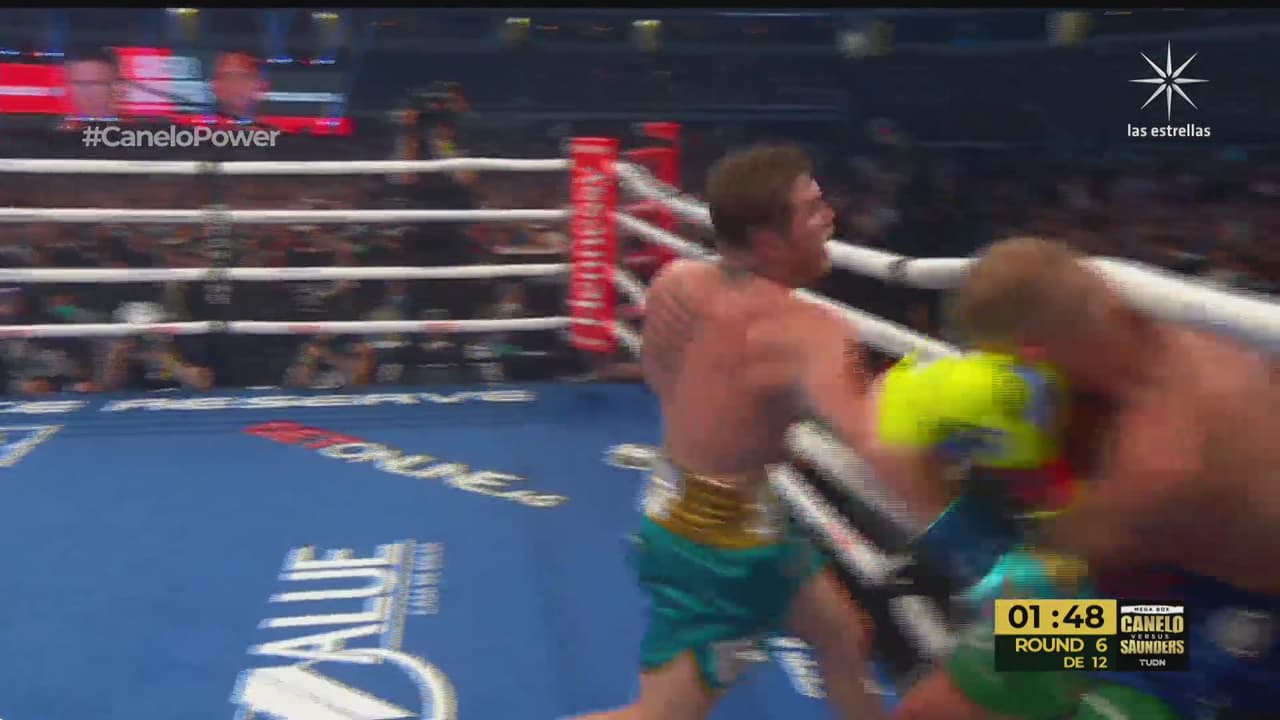 Los golpes de Canelo fueron muchos más que los de Saunders, quien quiso fanfarronear ante el mexicano que no dejó de ir hacia el frente en una pelea que se dersarrolló limpiamente hasta ese momento.
