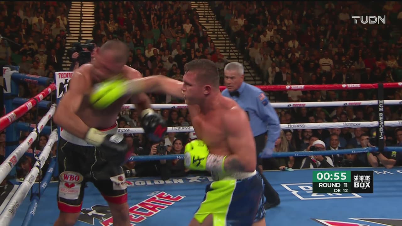 Canelo Álvarez le metió una espectacular combinación en el décimo primer round y desplomó al ruso.