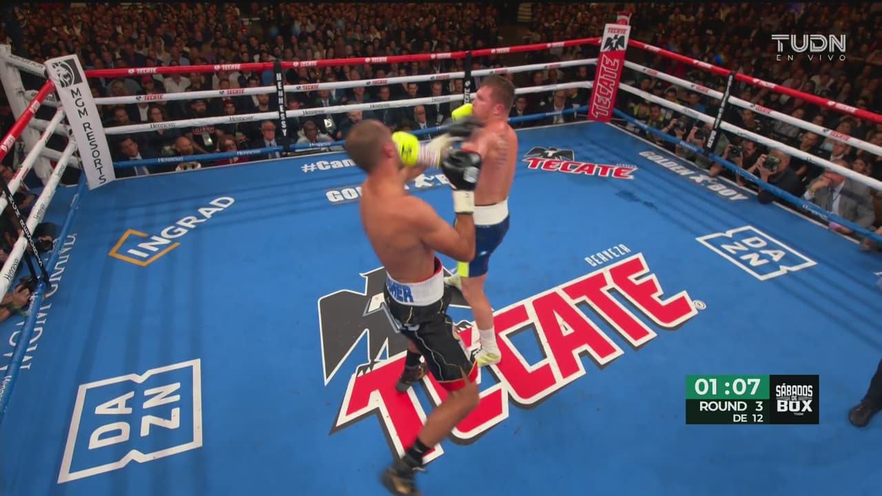 El tercero fue un intercambio de jabs que le daban ventaja al de Rusia, pero que seguían sin hacerle daño a Canelo.