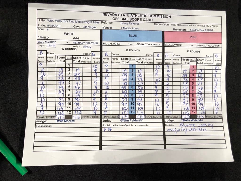 Las tarjetas de los jueces 114-114, 115-113 x 2.
