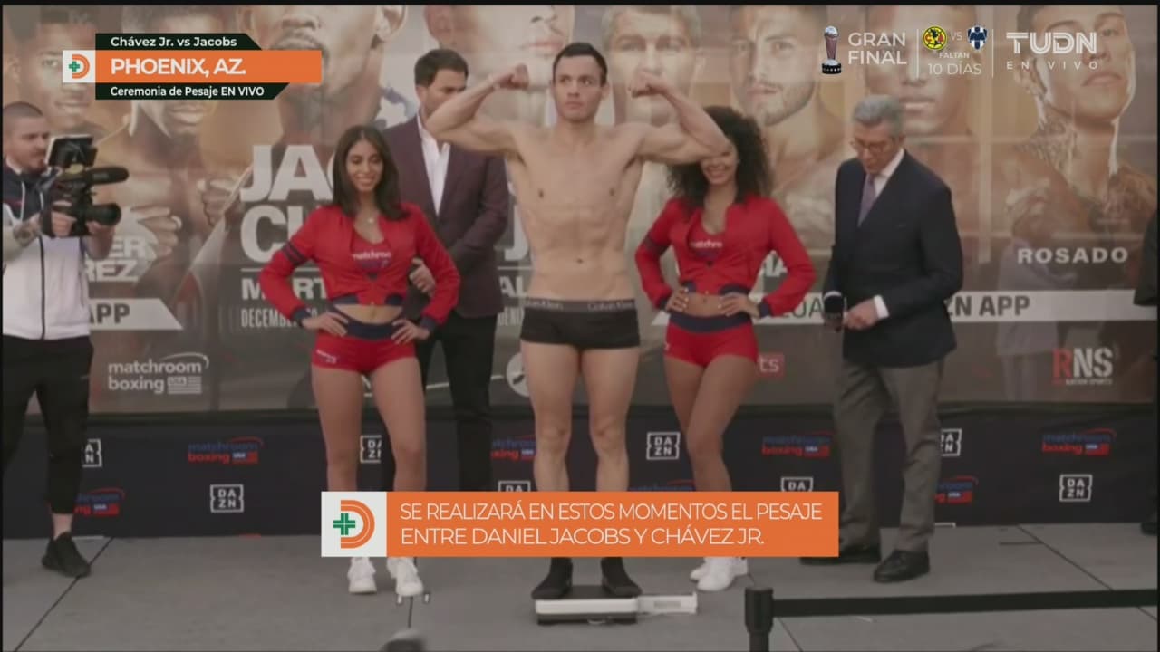 Chávez Jr. fue el primero en salir ante ‘La Romana’, posteriormente salió ante los asistentes Daniel Jacobs. El ‘Junior’ se quedó únicamente en truza y al salir a la báscula marcó 172.7 libras.