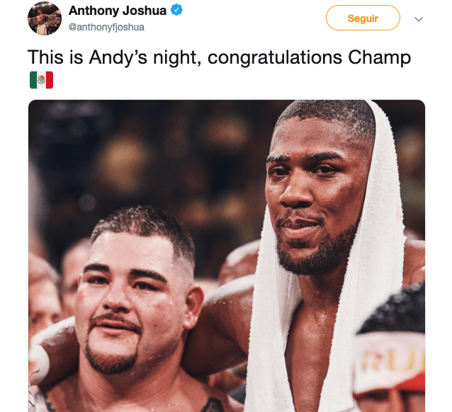 “Esta es la noche de Andy, felicidades campeón”, publicó el británico junto a una foto de ambos al término de la pelea.
