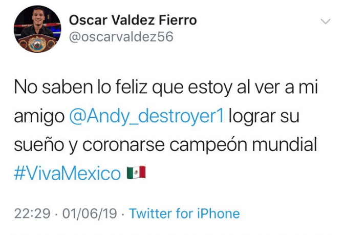 This is Andy’s night, congratulations Champ 🇲🇽 pic.twitter.com/5gE8uFx4MG