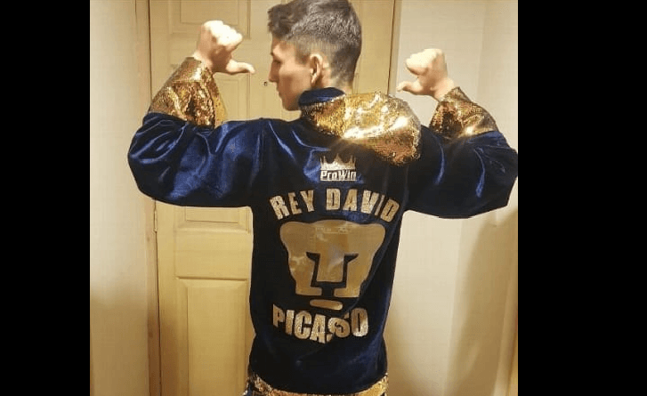 Alan David Picasso Romero no cumple aún la mayoría de edad, pero ya acumula un récord invicto de cinco peleas como profesional. Sin embargo, no es el hecho de que haya debutado a los 16 años lo que hace del todo especial al joven mexicano, sino su peculiar forma de presumir la pasión que comparte con el fútbol.