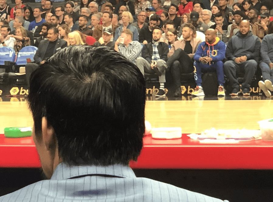 Mayweather es un asiduo personaje en los partidos de la NBA, por lo que no hay sorpresa alguna en encontrarlo en primera fila.