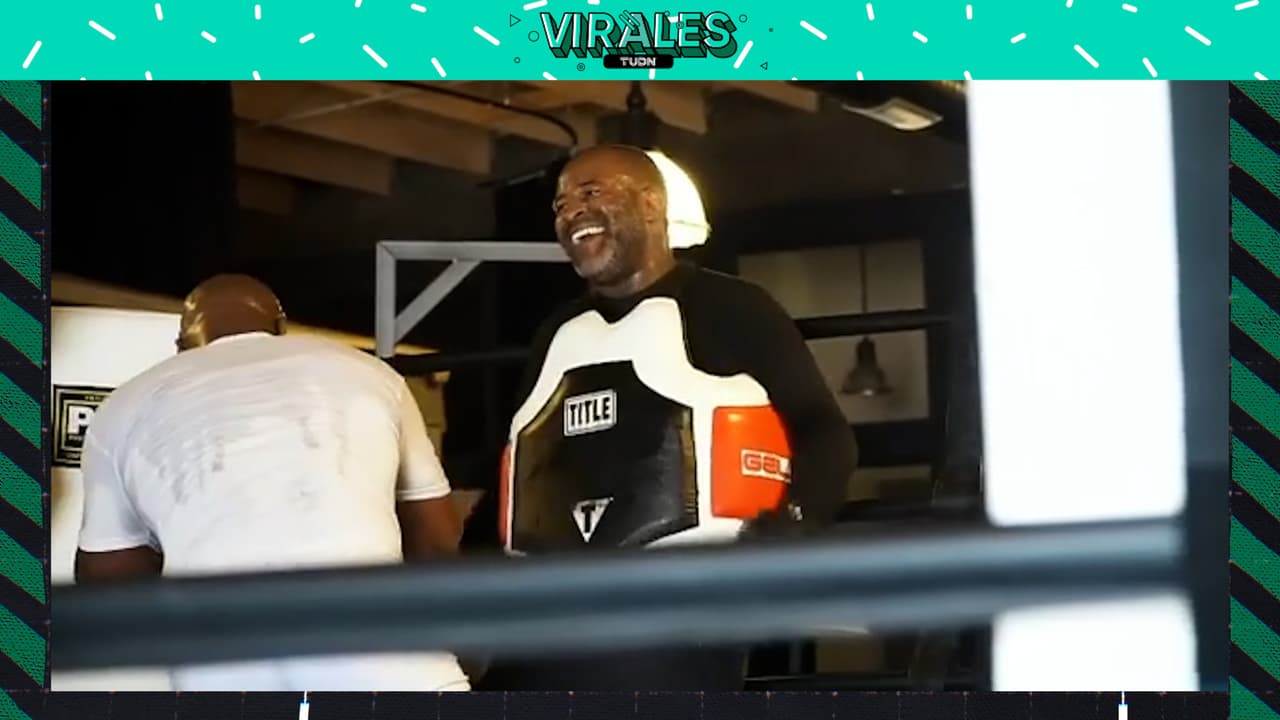 El exboxeador estadounidense mostró todo su poderío al arrinconar a su entrenador en una práctica en el gimnasio.