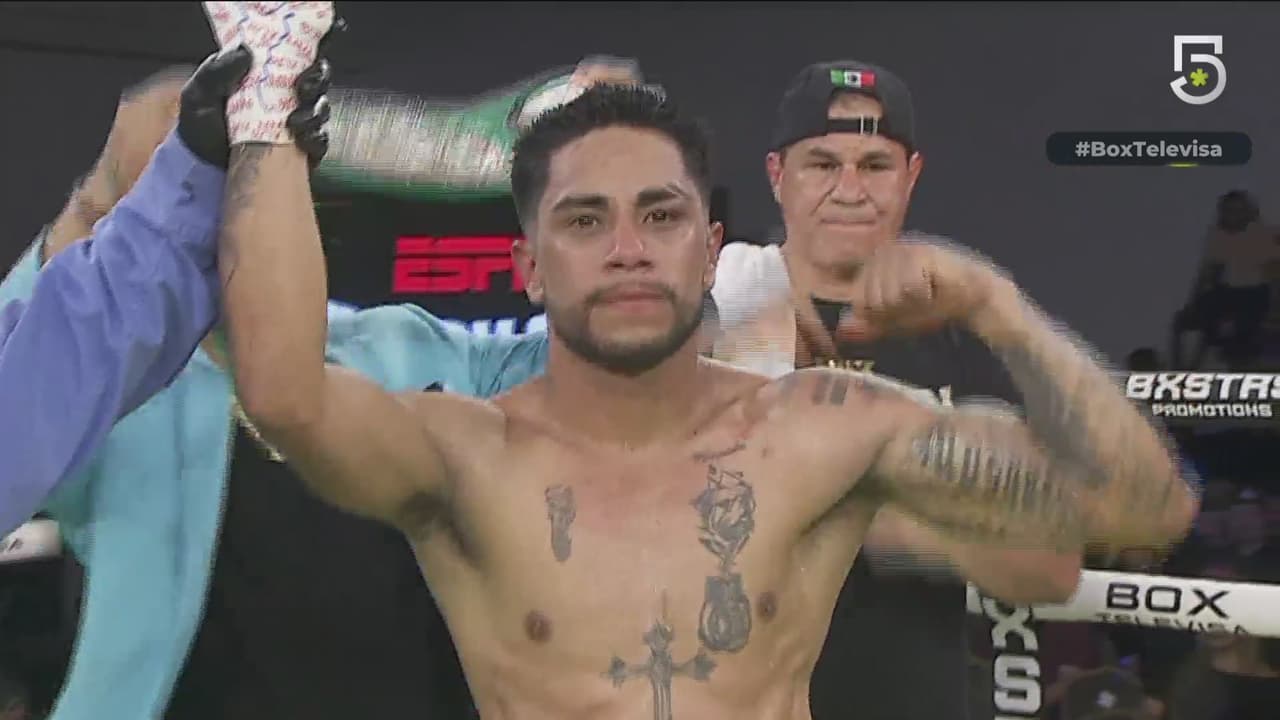 El pugilista de la Ciudad de México le mete fulminante gancho a Iván García, quien termina sobre la lona de rodillas, en el quinto asalto de Box Televisa.