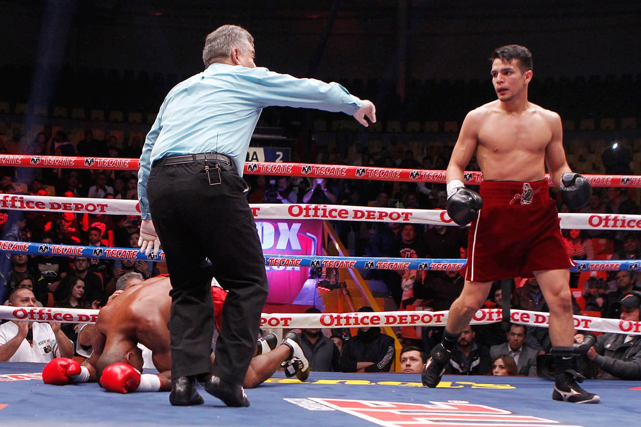 Díaz se fue a la lona después de recibir un fuerte derechazo en la boca del estómago que lo dejó sin aire, ante lo cual el réferi Jacinto Arámbula decidió detener la contienda pactada a 10 vueltas en la división de los Superligeros.