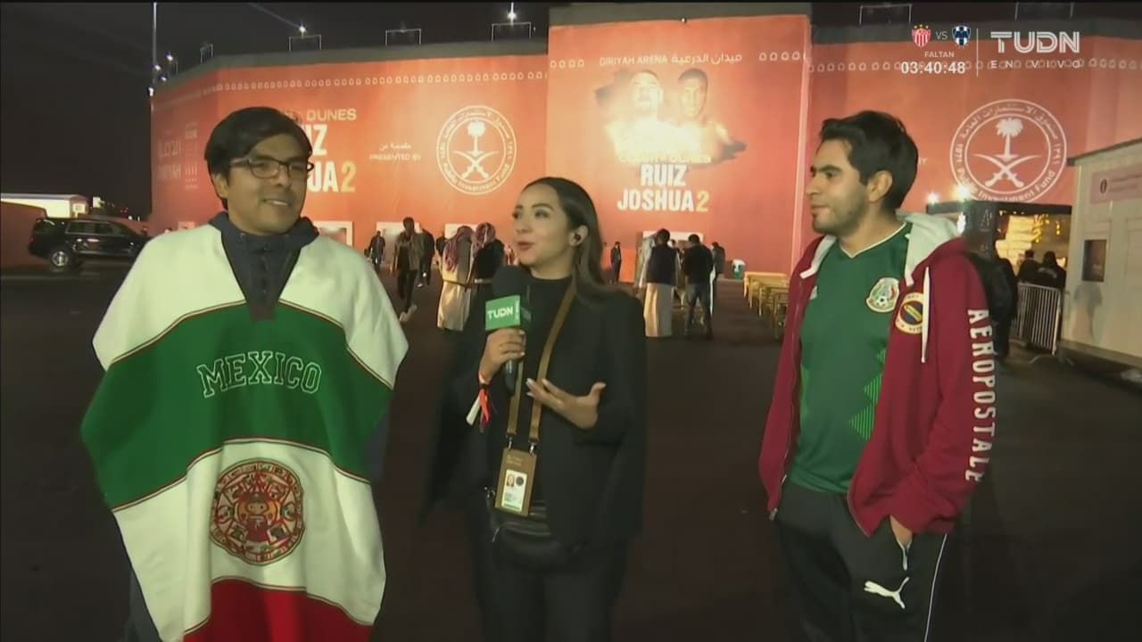 El primero en salir en la Diriyah Arena fue Anthony Joshua, quien recorrió el largo pasillo acompañado con la canción de Sweet Caroline de Neil Diamond. Posteriormente salió Andy Ruiz, enfundado con una bata dorada y con la canción Aguanile del puertorriqueño Héctor Lavoe.