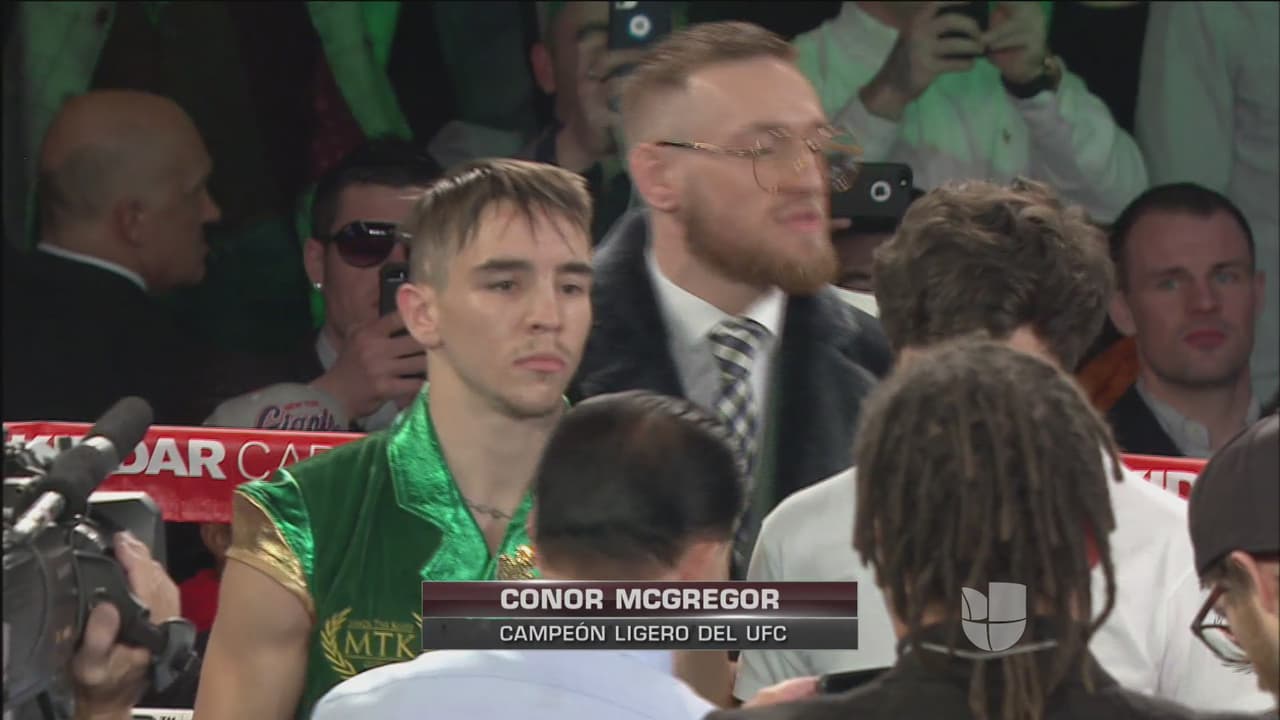 Michael Conlan apoyado en el cuadrilátero por Conor McGregor en una noche muy especial