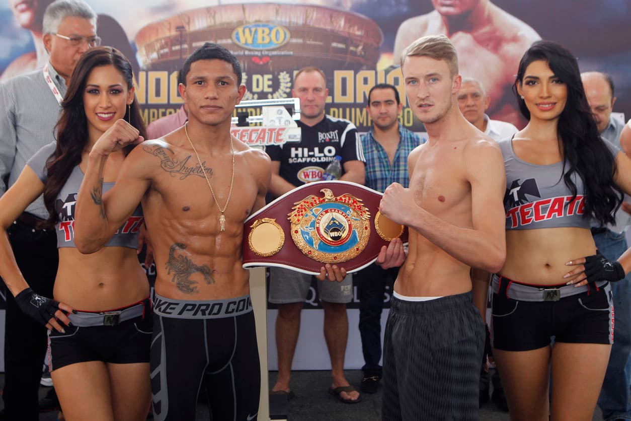 Miguel 'Alacrán' Berchelt y George Jupp en peso y listos para disputar el título interino vacante superpluma OMB.