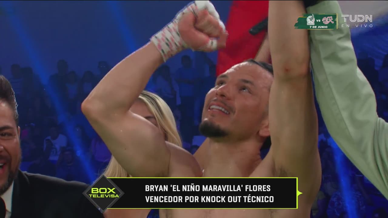 El 'Niño Maravilla' Flores cumple al noquear al 'Zurdo' Carrizo, quien prefirió irse a la lona que recibir más castigo del mexicano.