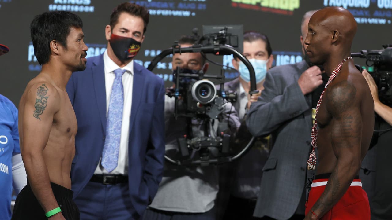 Pacquiao regresa después de más de dos años de ausencia en los cuadriláteros y con 42 años de edad, carga una foja de 71 combates, donde ha ganado en 62, 32 de ellos por la vía del nocaut, con siete derrotas y dos empates y ser el único púgil en la historia en lograr títulos en ocho divisiones diferentes. Si gana, será el más longevo en ser campeón welter por la AMB.