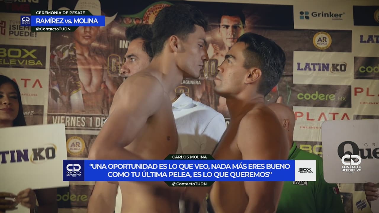 Javid Ramírez y Carlos Molina cumplen con la báscula, previo al combate estelar en Box Televisa desde Torreón.