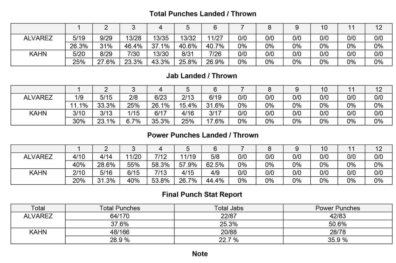Aunque de forma cerrada, 'Canelo' Alvarez conecto más golpes en la cuenta total, con 64 contra 48. Solo en el primer y cuarto round Khan igualó en cantidad de golpes al campeón.
