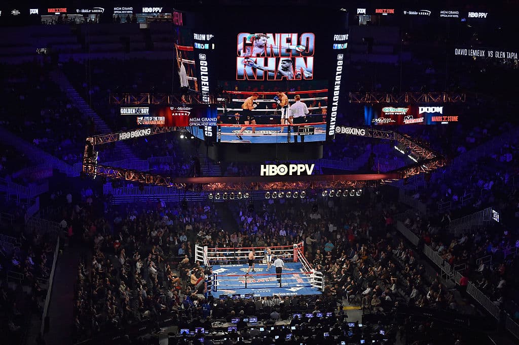 Ya viene la pelea entre Saúl 'Canelo' Alvarez y Amir Khan. las tribunas del T Mobile Arena aún no se ven 100% llenas, aunque es posible que lo están cuando empiece la pelea.
