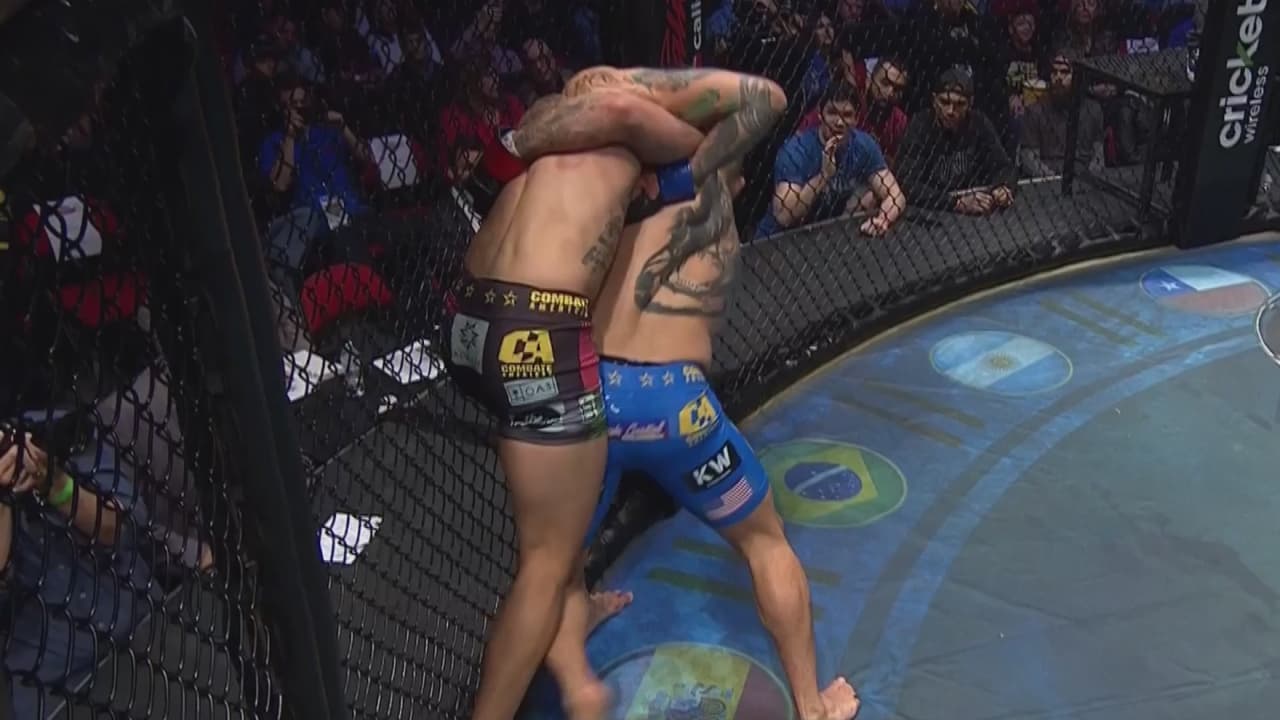 El estadounidense somete al mexicano, pero Pablo no sede e intenta liberarse en el primer round de la noche.