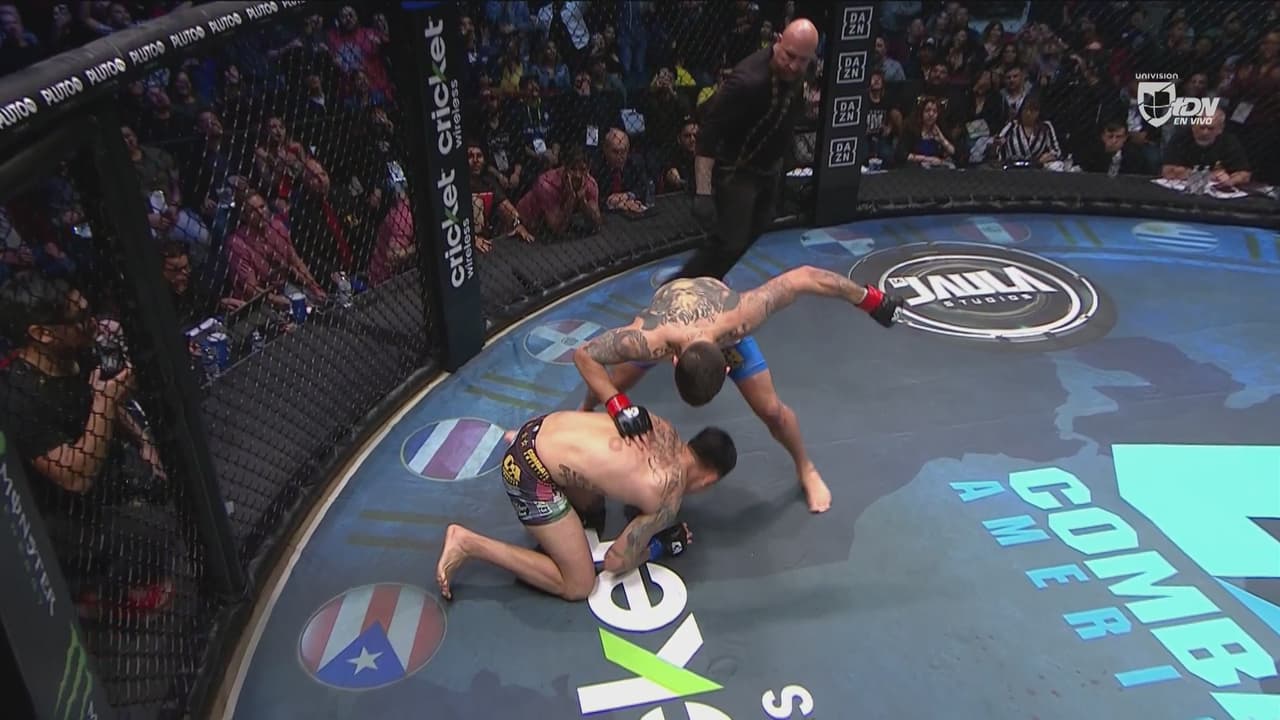 El 'Gallo' Sibori es salvado por la campana ante el ataque constante del estadounidense.