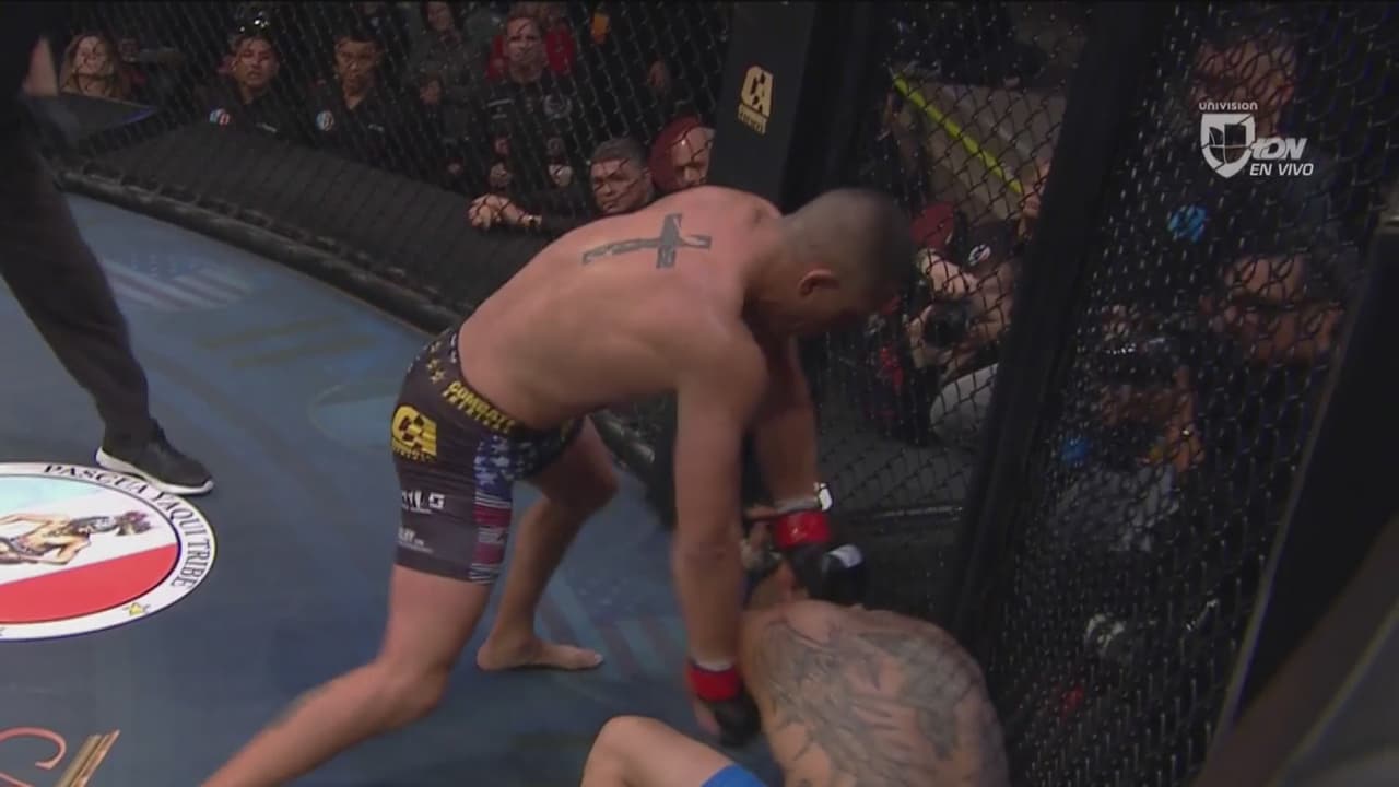 ‘El Toro’ se cansó de golpear a Adam Martínez en el piso y, tras una seguidilla de impactos, el réferi detuvo el castigo a los 4 minutos con 22 segundos del primer round.