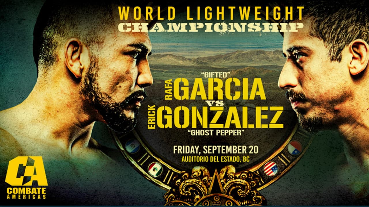 "Nuestra primera pelea por título mundial de pesos ligeros es un duelo entre dos de los más emocionantes y agresivos atletas jóvenes – Rafa García y Erick Gonzalez – quienes se han ganado su lugar pulverizando la competencia en su división”, afirmó Campbell McLaren, CEO de Combate Américas.