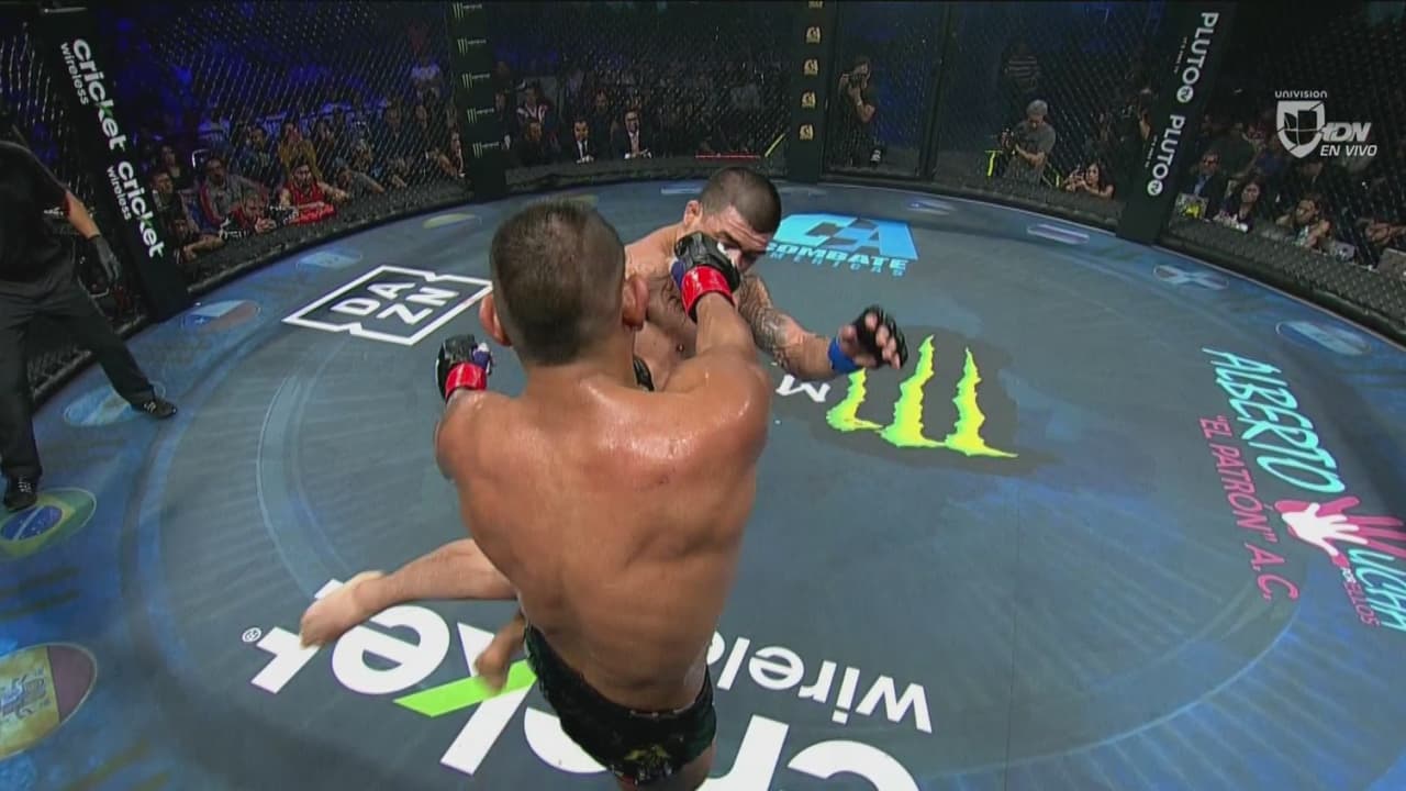 A pesar del impacto, el californiano asimiló bien la caída y, a pesar de los embates de Marroquín sobre el suelo, logró sobrevivir el round.