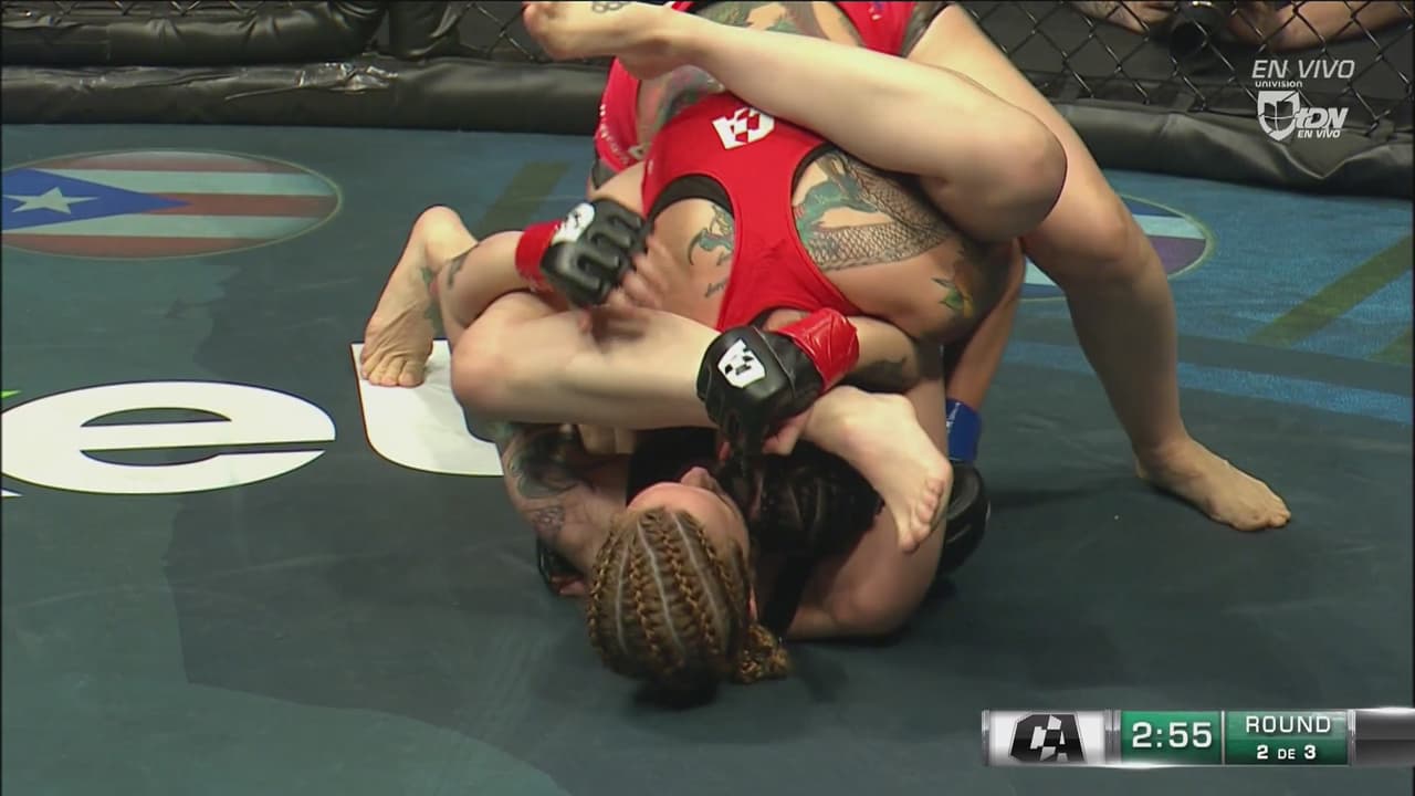 La estadounidense manda a la lona a la española, pero termina por las piernas de su rival en el cuello y controlada.