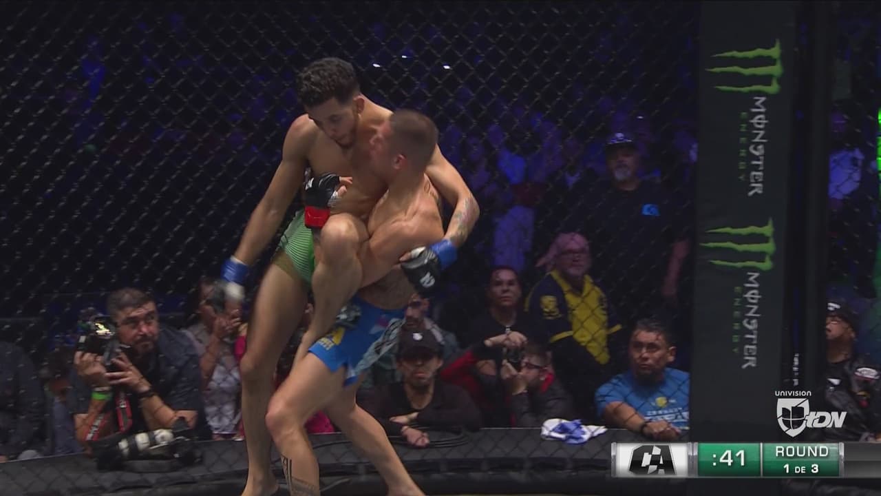 El combate fue dominado por el nortemaericano Rodriguez, quien conectó en par de ocasiones al mexicano, sobre todo con un rodillazo de pierna derecha que prácticamente desestabilizó al mexicano y después le repitió la dosis para el KO.