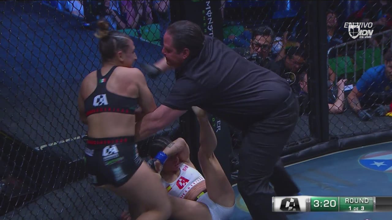 La mexicana aguantó la presión y el intento de derribo de Vanessa Rico, para terminar mandándola a la lona y conectar seis golpes limpios que eliminaron a la española.