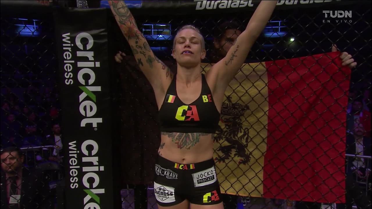 Con el rostro claramente herido, 'Thunder Rosa' salió al tercero y último episodio para buscar el nocaut, pero Mandiau consiguió frenarla contra las rejas e hizo más daño con los codos para llevarse la pelea por decisión unánime, ganar su primer pelea en las artes marciales mixtas y darle la bienvenida a la mexicana.