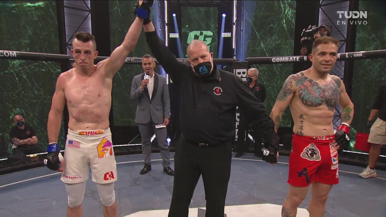 El español-estadounidense tardó poco en cumplir su objetivo, ya que al 1:45 del primer asalto, conectó una patada en la boca del estómago de Velasco para mandarlo a la lona, lo castigó con el ground and pound y obligó al réferi a detener la contienda para llevarse el triunfo por nocaut técnico.