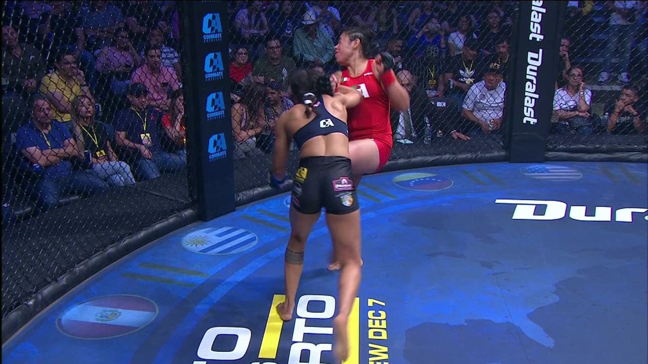 En la transmisión de TUDN iniciamos con el combate entre la dominicana Criszaida Adames y la mexicana Alma Céspedes de Puebla, en un peso pactado y a pesar de que había cinco libras de diferencia entre las peleadoras una vez en la jaula, se dedicaron a intercambiar golpes.