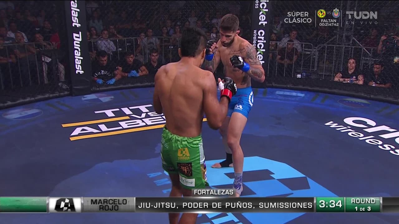 En la transmisión que te compartimos EN VIVO por la multiplataforma de TUDN tuvimos la batalla por el peso Gallo entre el argentino Marcelo Rojo quien llegó con 15 combates de experiencia en las ganadas por seis perdidas contra Victori Hugo ‘El periquito’ Madrigal quien como local traía una buena porra aunque con menos de la mitad de peleas de experiencia por sus 9 ganadas y dos descalabros.