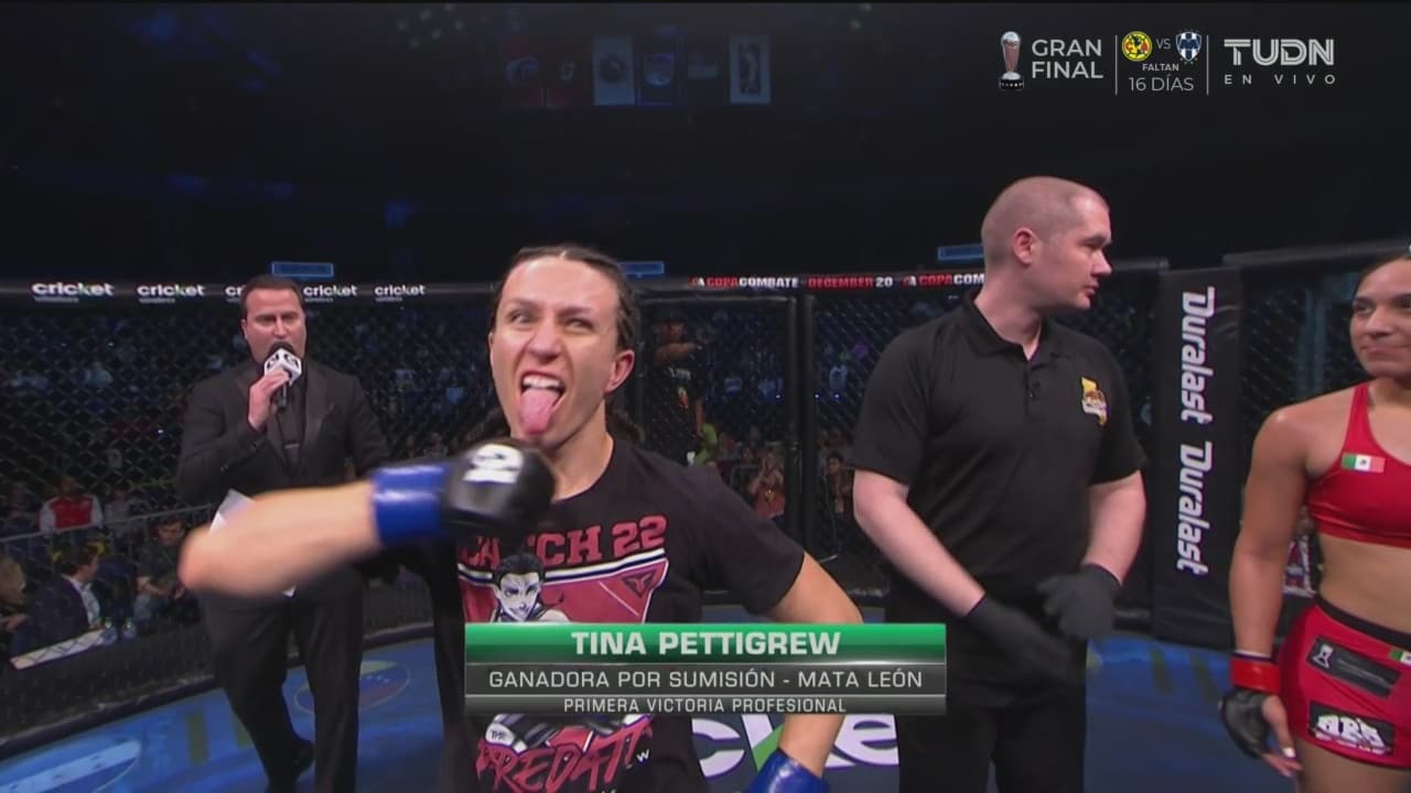 Las damas también celebraron contienda y en el peso gallo, Tina Pettigrew se estrenó profesionalmente ante Maritza Sánchez que no pudo evitar el primer derribo y estando en la lona fue cuestión de meter los ganchos y así, Tina Pettigrew logró la sumisión por una mataleón y sumó su primera victoria profesional en Combate Américas.