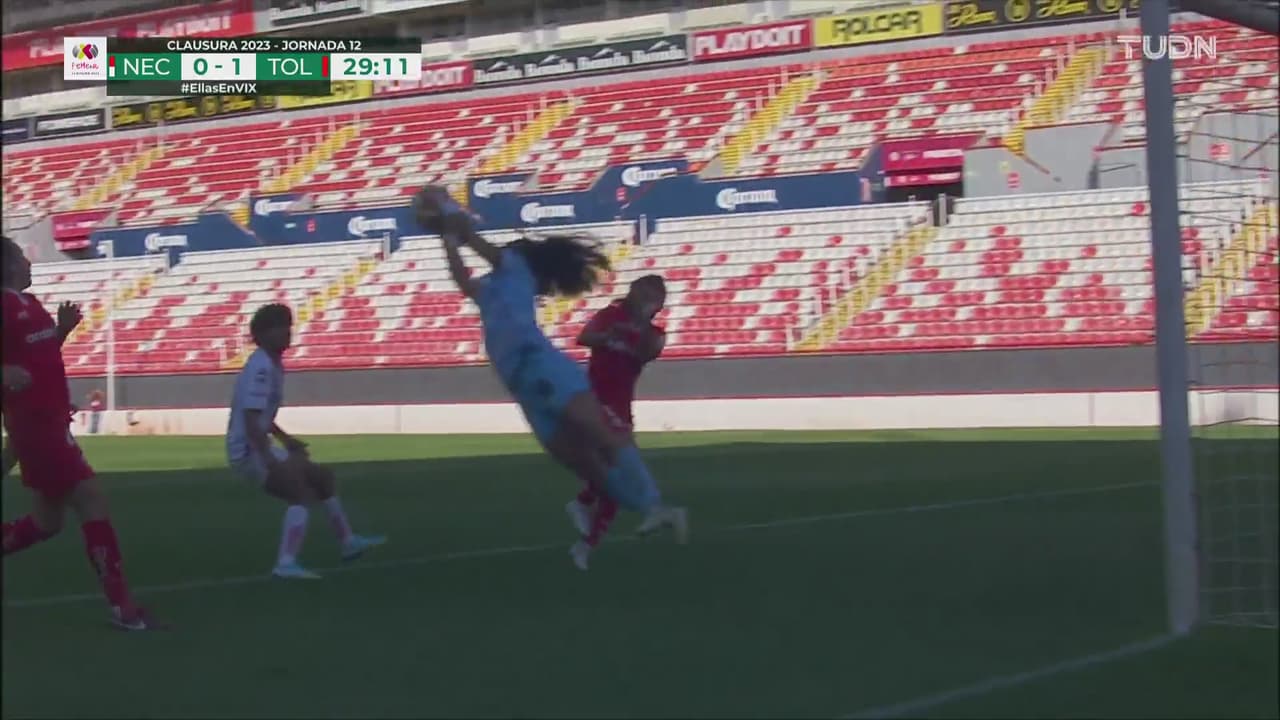 Sam se perfiló por la banda para meterse en zona prometida, pero Kayla pegó un brinco para arrebatar el esférico.