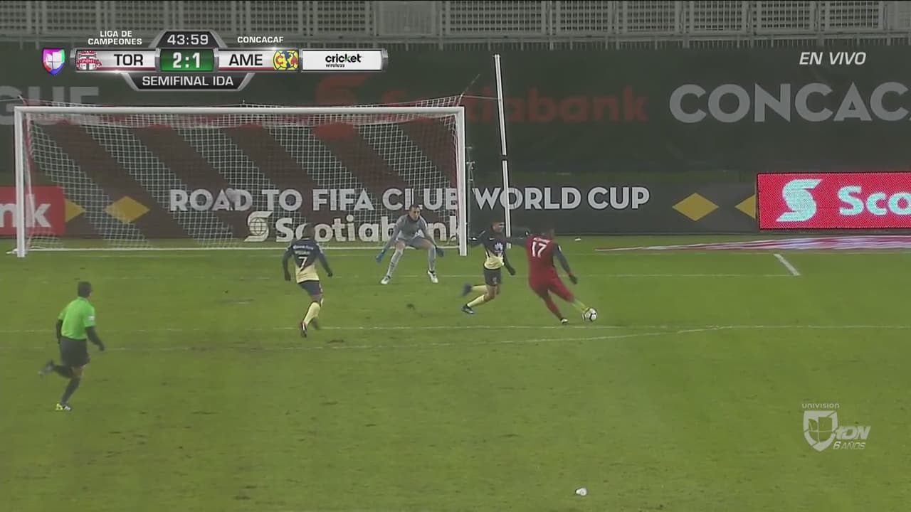 Tremendo gol del estadounidense con base en su potencia y quitándose a Carlos Vargas con una finta tras un servicio de Giovinco. Los Reds ya remontaron al Ame.