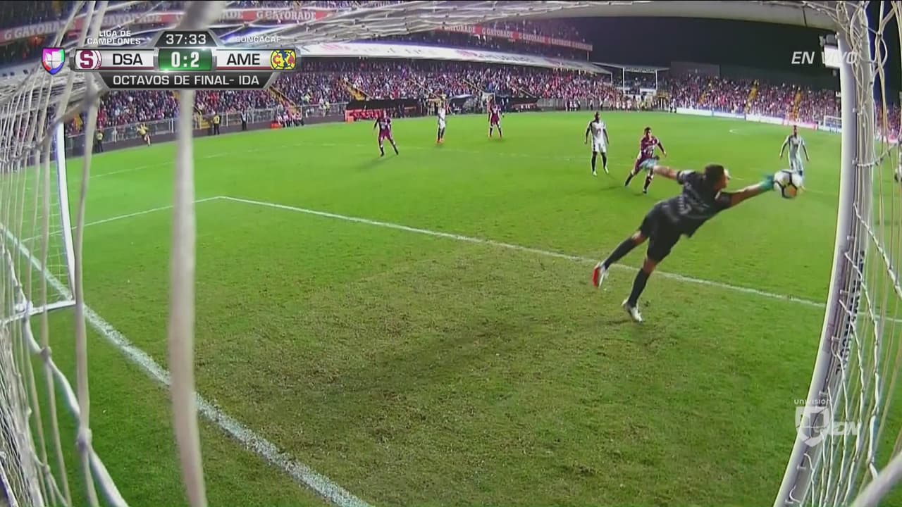Saprissa sacó un disparo de media distancia que el portero argentino tuvo que rechazar con un lance espectacular y efectivo.