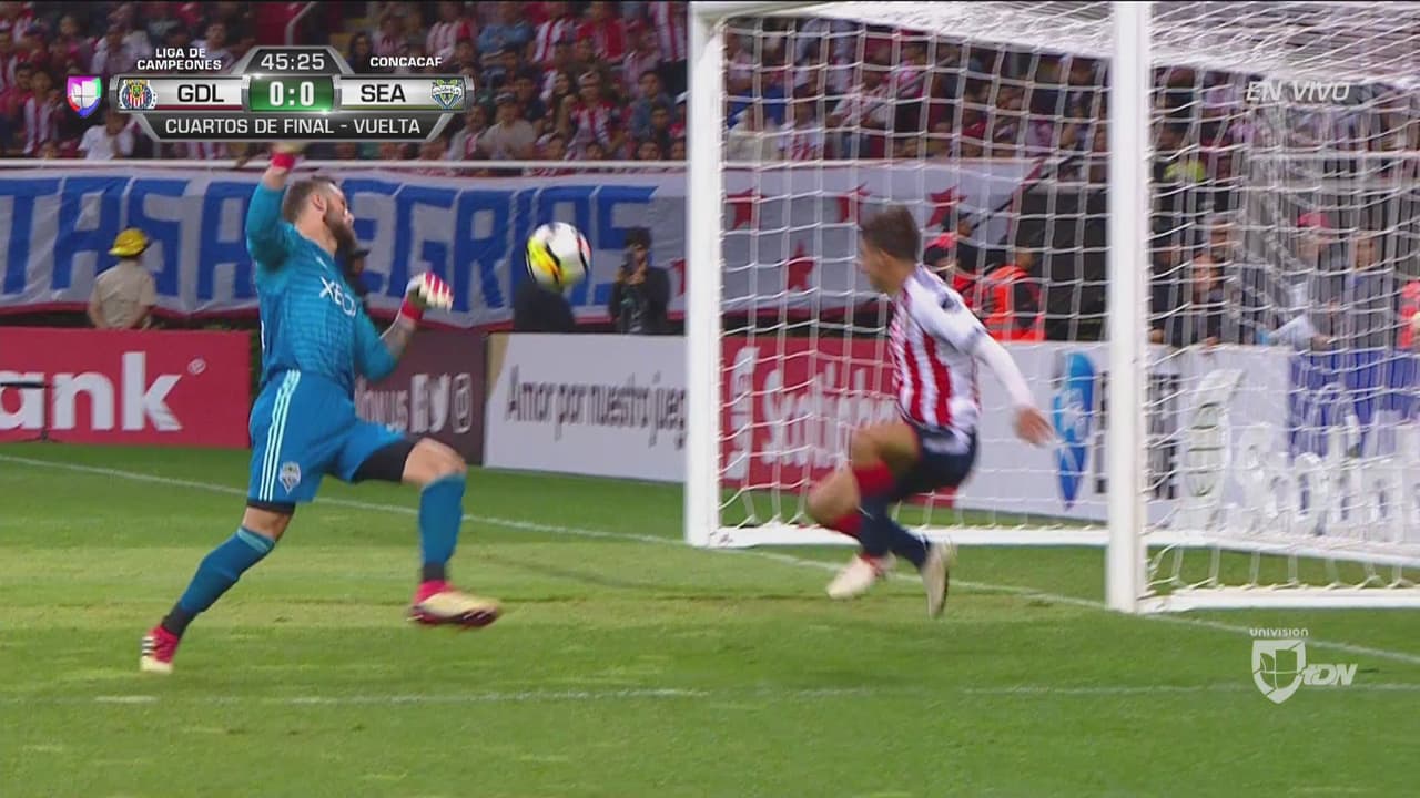 Gran pase filtrado de Michael Pérez para el ‘Cone’ que no supo atacar el balón cuando estaba solo contra el arquero del Sounders.
